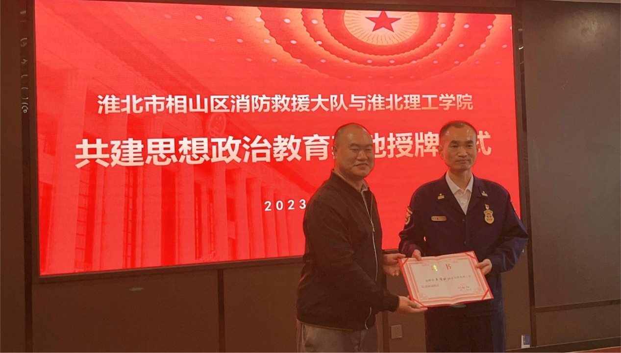 为积极贯彻落实习近平总书记关于“大思政课”建设的重要指示,扎实推进思想政治教育实践基地共建工作走深走实。4月20日下午,淮北市相山区消防救援大队走进十大买球的正规网站开展结对共建暨“思想政治教育基地”授牌仪式。十大买球的正规网站副校长郑来纪、后勤处处长程坚出席活动,此次活动由十大买球的正规网站院长助理陈志操主持,十大买球的正规网站全体教师参加活动。