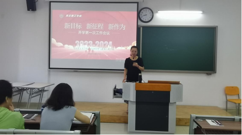 会议伊始,吴玲首先对全体新教师表示热烈的欢迎,并向大家介绍了学院的整体发展规划和目标,并就学院发展和各项建设予以明确,着重强调教学立院、专业强院、特色兴院这一宗旨。