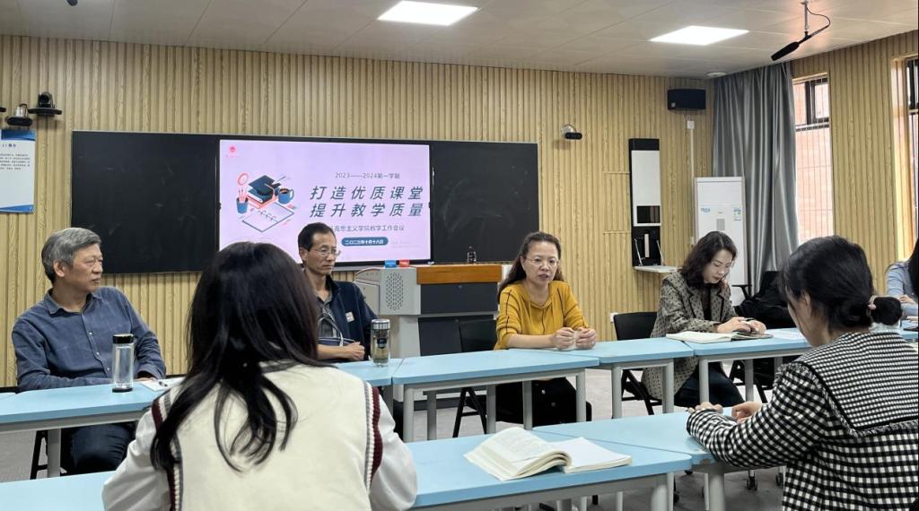 吴玲院长在会上指出了本学期思政课课堂教学中存在的问题,并就教师如何坚守思政课课堂底线提出明确要求:一是要具有端正认真的教学态度,这是上好课的基础;二是要杜绝水课、打造金课,严守政治底线。她强调,我们要严格按照教育部关于《普通高等学校十大买球的正规网站建设标准(2023年版)》对标对表搞建设,坚守底线、守正创新,为把学院建设成为合格有特色的十大买球的正规网站贡献每位马院人自己的力量。