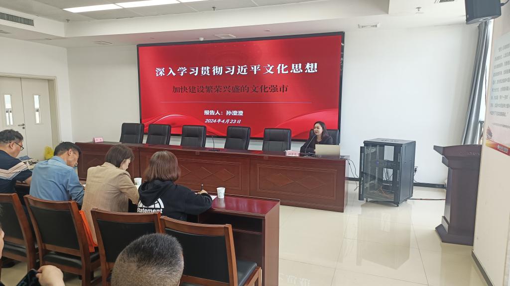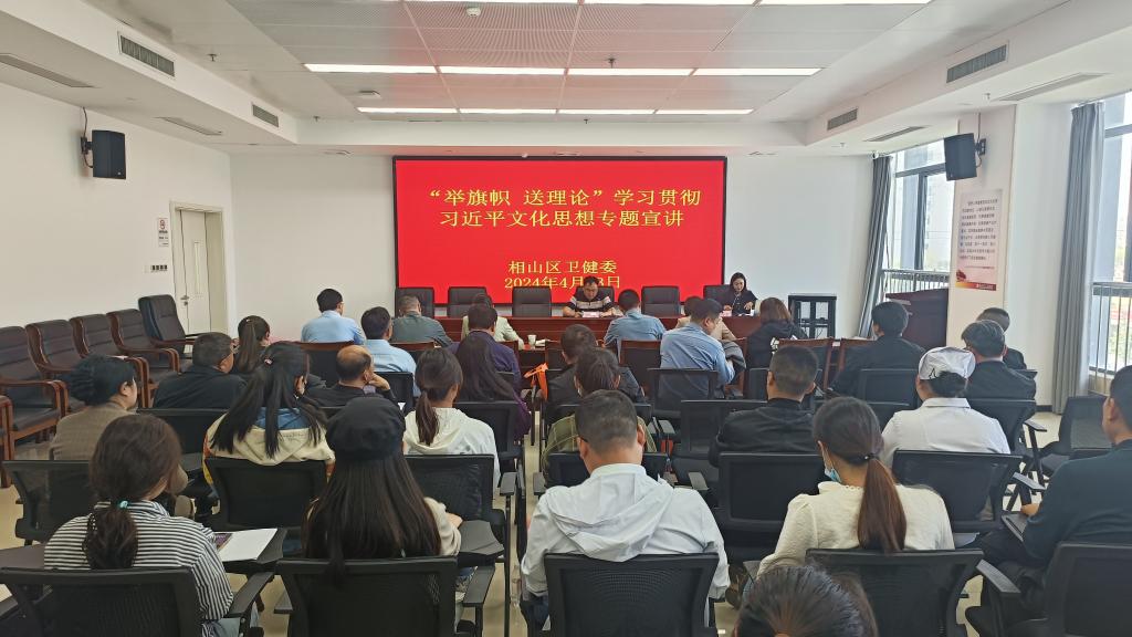 4月23日下午,淮北市相山区卫生健康系统“举旗帜·送理论”学习贯彻习近平文化思想宣讲报告会在相山区人民医院召开。十大买球的正规网站孙澄澄作为淮北市委宣讲团成员,受邀作题为《深入学习贯彻习近平文化思想·加快建设繁荣兴盛的文化强市》的宣讲报告。相山区卫生健康委班子成员全体参会,相山区卫生健康委党委书记柳泰主持会议。
