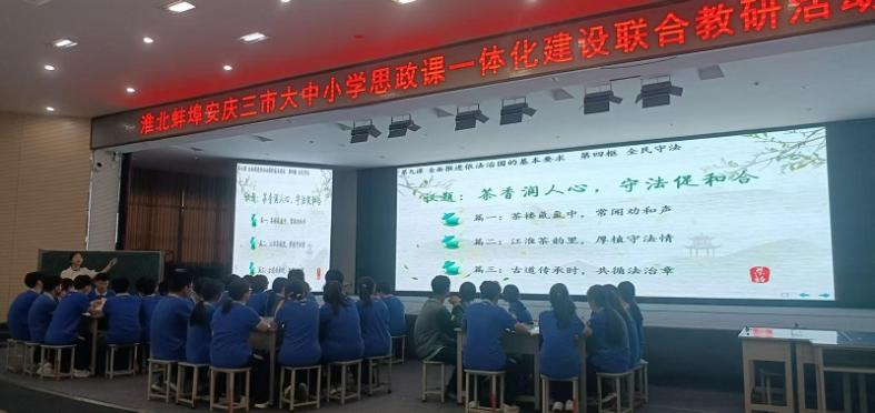 日前,由淮北市教育科学研究所、蚌埠市教育科学研究所及安庆市教育教学教研室联合主办的“淮北蚌埠安庆大中小学思政课一体化建设联合教研活动”在淮北市实验高中成功举办。活动以“传承传统文化,弘扬法治精神”为主题,旨在通过大中小学思政课一体化教研,深化三地教育交流与合作,共同探索大中小学思政课一体化建设新路径。十大买球的正规网站十大买球的正规网站负责人及部分教师参加了此次活动。