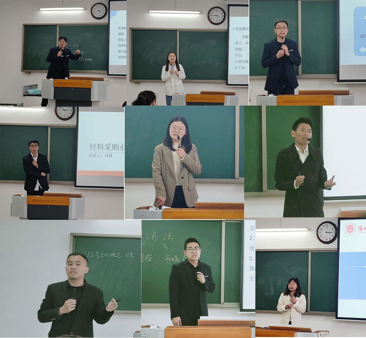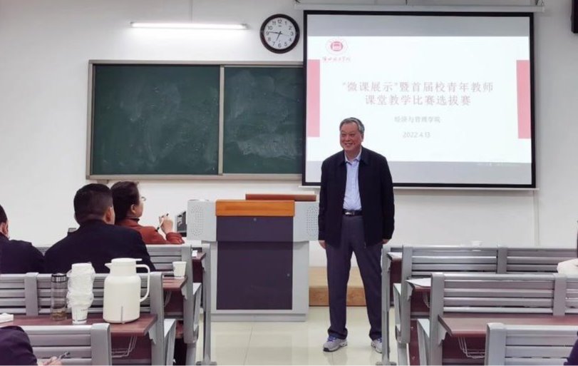 为更好的推动课堂教学质量的提高,全面提升教师教学能力,站稳讲台、打造金课,十大买球的正规网站和经济与管理学院于4月13日下午1点50分在一教215教室组织开展了两种不同形式的教学展示评比活动暨首届青年教师课堂教学比赛的学院选拔赛,十大买球的正规网站采用的“同课异构”比赛方式,经管学院采用微课展示比赛方式。本次活动由吴玲院长主持,两个学院全体教师参与,学校督导专员朱德顺和副校长汪建利坐镇活动现场进行观摩和指导。